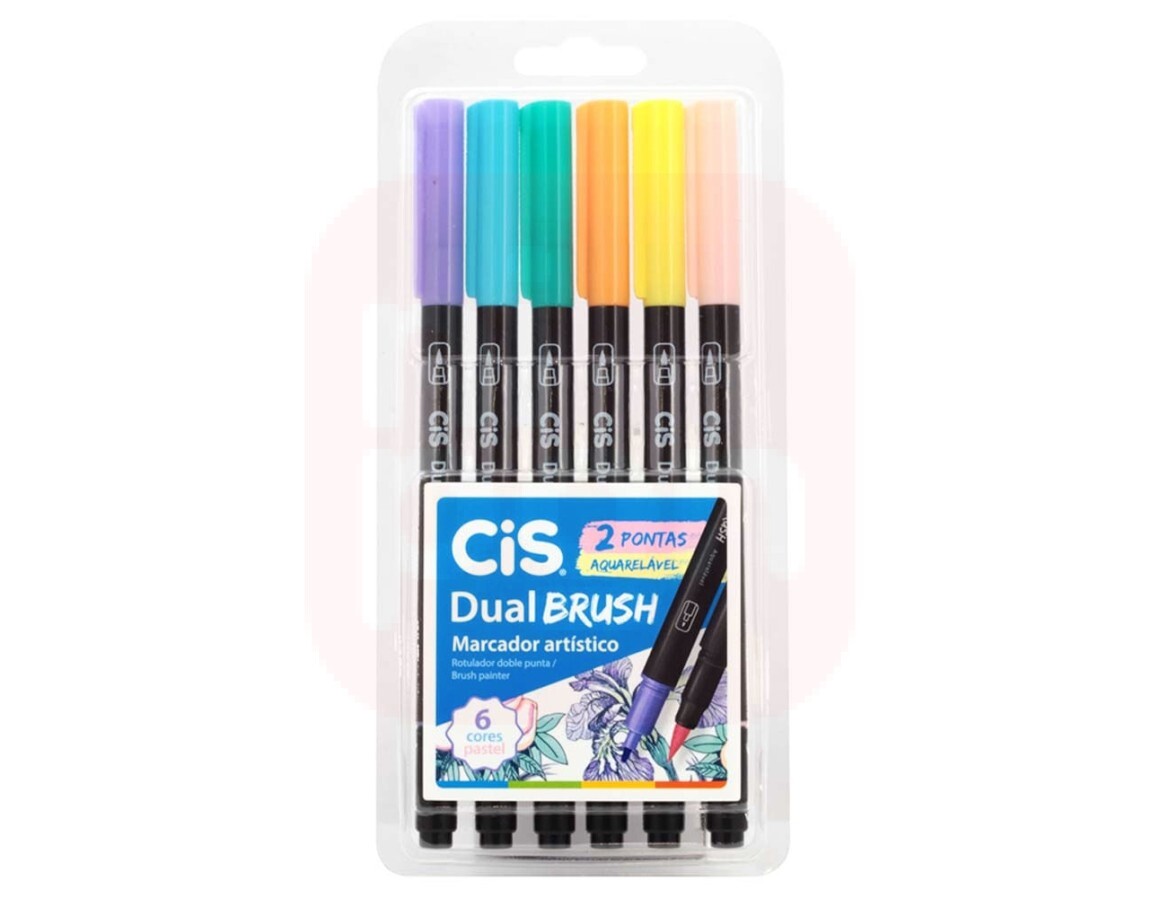 Caneta Brush Pen 6 Cores Pastel - Cis